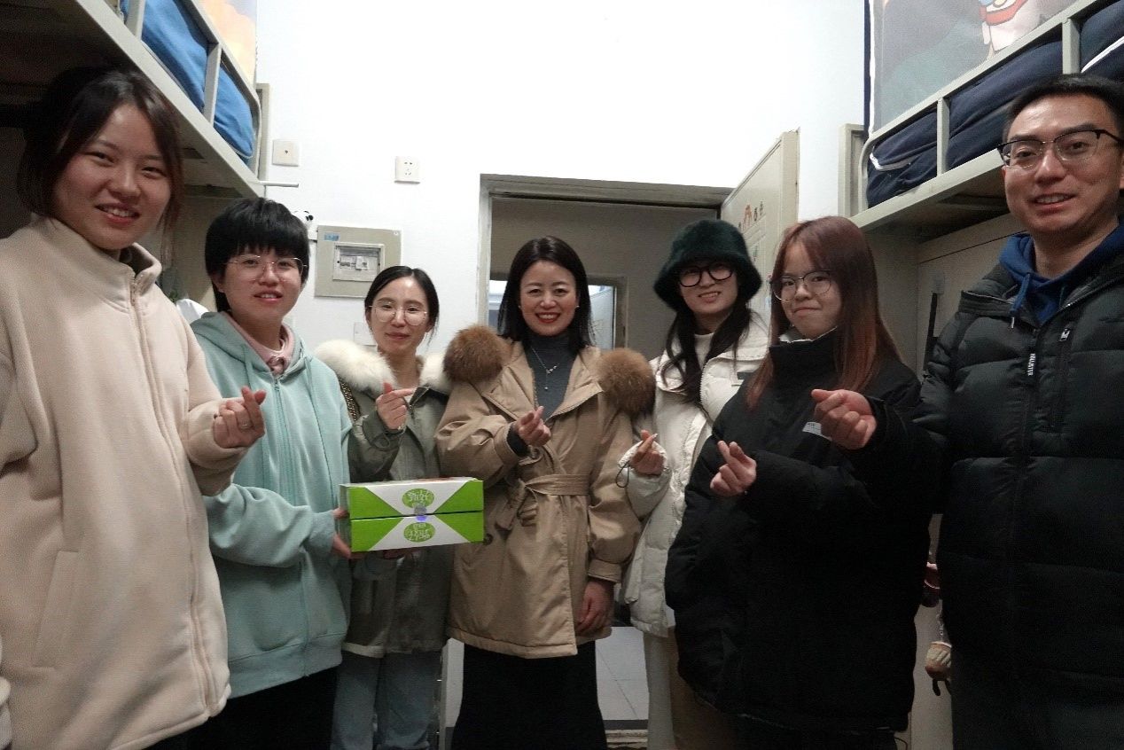 2024年元旦佳节即将来临之际,为深入了解学生动态,提升学院同学的凝聚力和归属感,1229日和1230,学院党委副书记邓秀芸、研究生辅导员赵晨、本科生辅导员杜晓林和高楠共同走访学生宿舍,看望慰问学生。