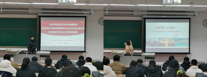 接下来,机械工程学院23级博士党支部组织委员卢旭磊同志就《习近平对社会工作作出重要指示强调坚定不移走中国特色社会主义社会治理之路推动新时代社会工作高质量发展》进行了专题讲解,分析了习近平总书记关于社会治理的核心理念,并强调党员要在推动社会治理现代化中发挥重要作用,促进社会工作高质量发展。
