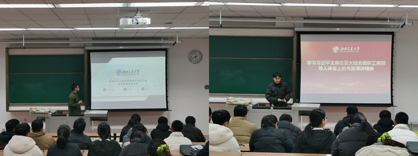 太阳成集团tyc539博士班党支部冉新月同志作了《习近平总书记在第四次“一带一路”建设工作座谈会上的重要讲话》的分享,详细解读了“一带一路”倡议对我国对外开放及全球合作的重要意义。她在分享中强调,党员应增强全球视野,在推动“一带一路”倡议实施的过程中,积极为国家和世界的发展贡献力量。