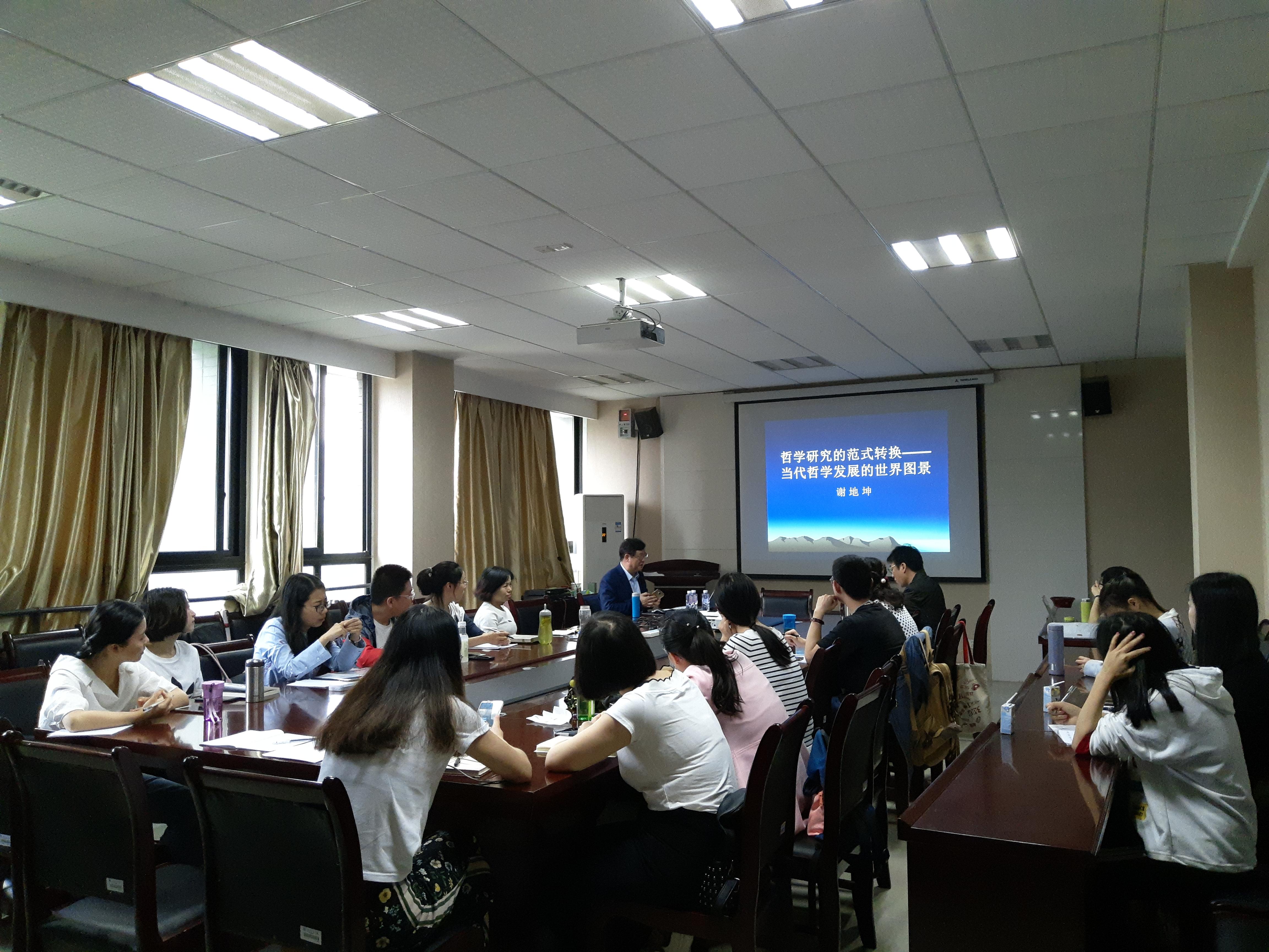 2018年4月20日上午9点,中国人民大学杰出学者,博士生导师谢地坤教授在X4320室为我校师生带来题为“哲学研究的范式转换——从当代世界哲学发展的图景来看”的学术讲座。此次讲座由太阳成集团tyc539研究生院主办,太阳成集团tyc539承办。讲座由太阳成集团tyc539院长,博士生导师林伯海教授主持,我院部分教师、研究生及人文学院部分研究生参加了此次学术讲座。