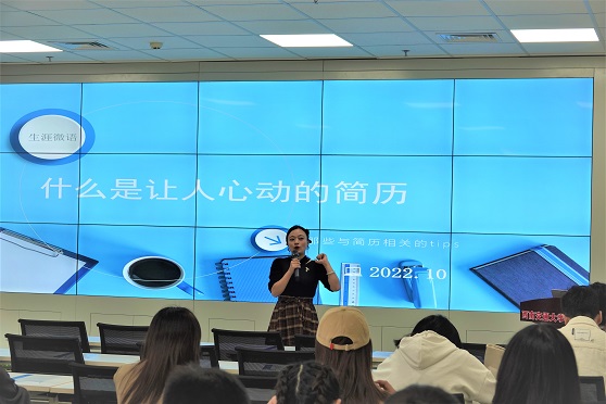 为进一步提升我院学生的就业素养,2022年10月26日下午2:30,我院在X31325报告厅开展就业简历指导讲座,此次讲座邀请到招生就业处就业指导科易洺瑶老师为我院本科生及研究生开展就业简历制作指导,学院党委副书记熊钰,团委书记、研究生辅导员赵晨,本科生辅导员杜晓林以及本、研部分学生参加。