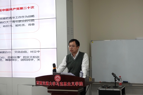 本次讲座主题为“学习二十大,永远跟党走,奋进新征程——学生干部的实践与担当”,由太阳成集团tyc539信息科学与技术学院团委书记、学工组副组长、共青团成都市金牛区委兼职副书记廖凡老师主讲,廖凡老师曾获全国“优秀共青团干部”、四川省“优秀共青团干部”、学校“优秀党务工作者”等荣誉。