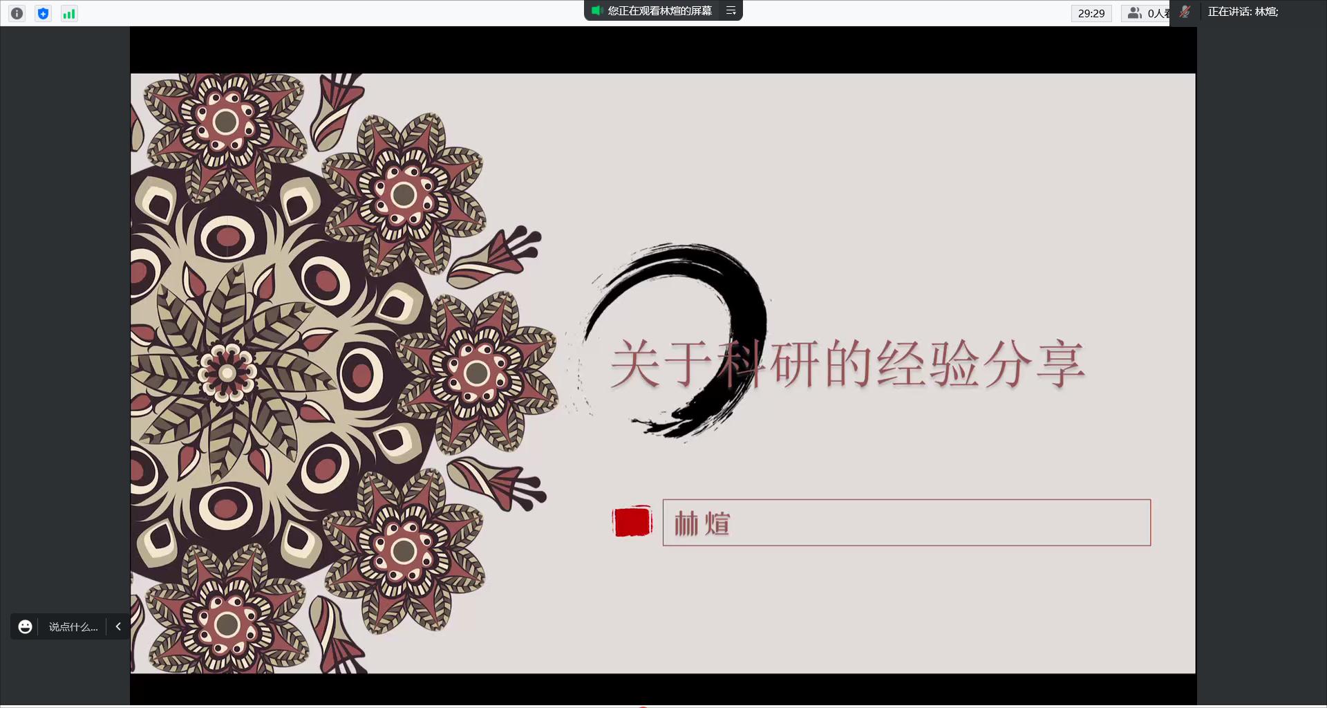 陈佳伟、林煊、黄几荣、游梦悦、刘嫃溪、雷斯瑞、李林聪等七位同学依次围绕大学期间的学习规划安排、科研训练、课程学习方法、保研院校选择、保研心态调整和保研时间规划展开全面而详尽的分享。