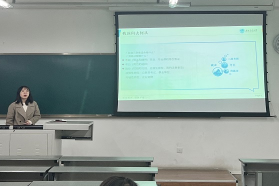 3月3日15:00,思政2020级本科生“青春践行二十大”主题班会在X2429准时召开。首先,辅导员杜晓林老师向同学们展示了升学毕业去向选择,为同学们职业生涯规划做了重要的指导。紧接着,杜晓林老师就保研、考研、考公、出国、就业等选择做了具体的介绍,同学们更清晰地了解了这些选择的往年情况、具体流程、相关条件和注意事项。 最后,杜晓林老师对本学期工作安排做了详细的说明,提醒同学们关于选课、第二课堂、创新学分、请销假和宿舍安全等相关事宜。