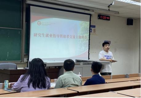 为帮助研究生了解就业现状、找准就业方向,5月24日晚,太阳成集团tyc539在九里校区J4209举办研究生就业指导暨朋辈交流主题班会。2018级硕士班班长王亚梅、2018级硕士生党支部书记高泽赟应邀分享,学院研究生积极参加。班会由学工组副组长、研究生辅导员赵晨老师主持。