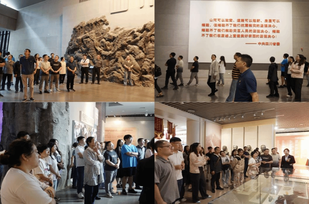 二是赴纪念馆开展警示和廉洁教育。2024年6月6日,学院党委以实地研学方式组织师生党员代表共计45名赴5•12汶川特大地震纪念馆和北川羌族自治县石椅村开展警示和廉洁教育。石椅村是“5 • 12”汶川特大地震后的重建村,师生党员们在村落中重温了习近平总书记在2023年春节前夕视频连线看望慰问基层干部群众时的重要讲话精神,倾听了石椅村干部群众在党的带领下艰苦奋斗、推进乡村振兴的故事。在地震遗址纪念碑碑前,全体师生党员三鞠躬并向在汶川地震中遇难的同胞献花,以表达对逝者的哀思。在5•12汶川特大地震纪念馆,党员们实地参观了“山川永纪”主题展馆,以及《严格监督,廉洁救灾》、《阳光重建,全程监督》两大廉政专题展览。整个廉政教育专题展全面翔实地反映了中央、各省市严格监管救灾款物、重建资金项目、实现廉洁救灾和阳光重建等内容。