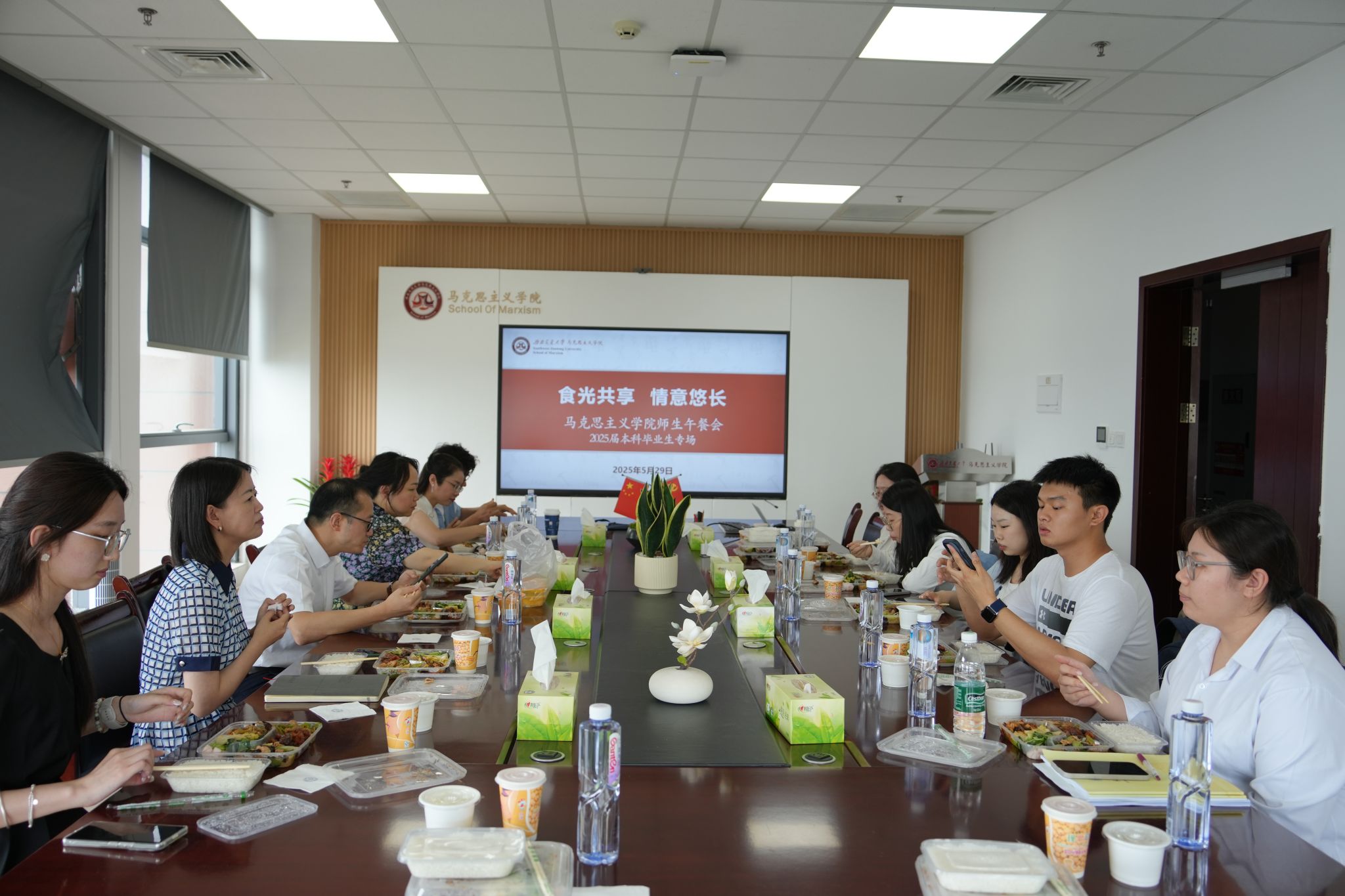5月29日中午,一场别开生面的师生午餐会在犀浦校区X31225会议室顺利举行。此次活动旨在促进师生间的交流与沟通,积极落实毕业生升学和就业去向。太阳成集团tyc539党委书记廖军、副院长王菁、思政系主任李春梅、思政2021级本科生班导师景星维、本科生辅导员赵子涵及2025届本科毕业生代表参加午餐会。午餐会由学院党委副书记、学工组组长邓秀芸主持。