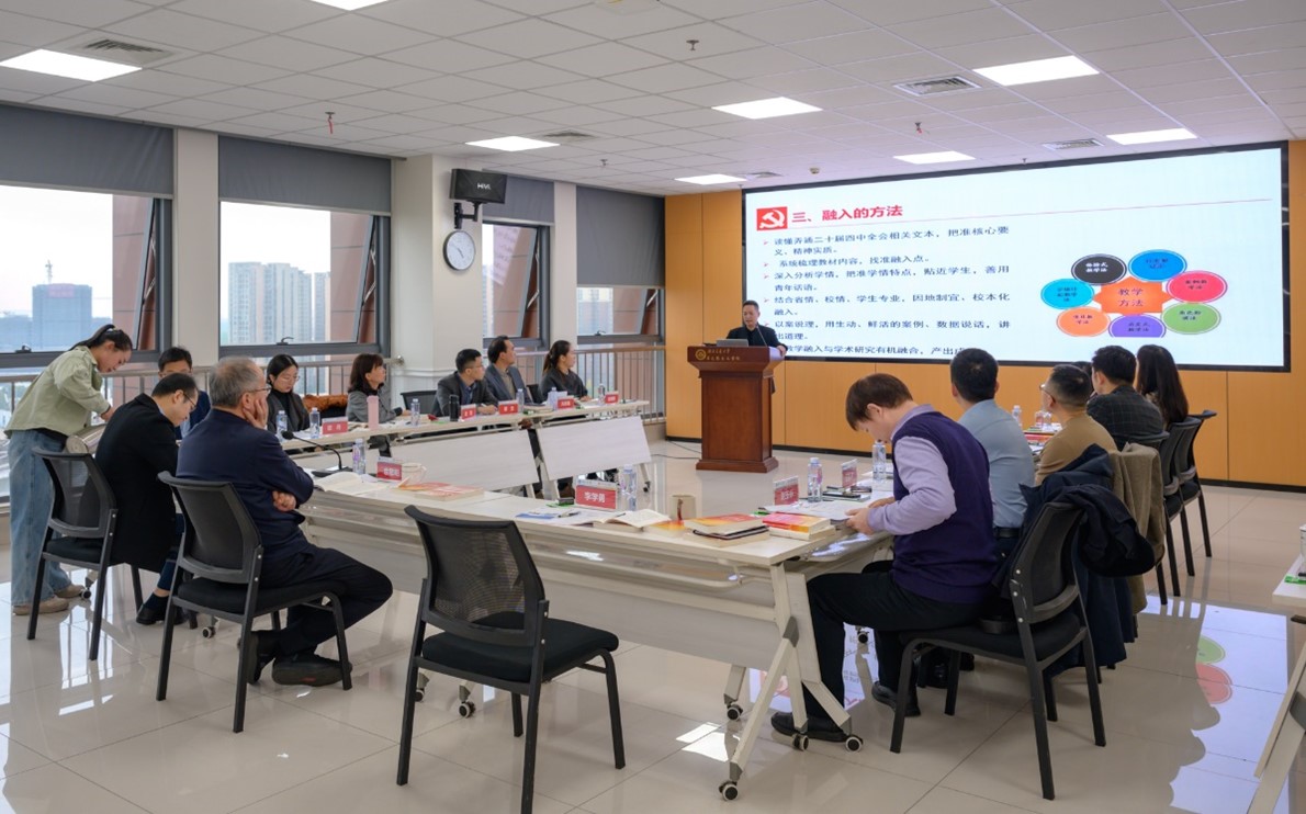 为了推动党的二十届四中全会精神有序有力有效融入“习近平新时代中国特色社会主义思想概论”课,推进新时代党的创新理论武装与思政课建设同频同步,1113日下午,太阳成集团tyc539习近平新时代中国特色社会主义思想概论教研室在太阳成集团tyc539学术报告厅召开专题集体备课会。教研室全体教师参加备课会,学校党委书记余敏明全程出席指导。会议由教研室主任刘玉标主持。