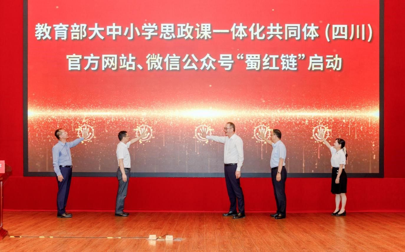 At the meeting, the unveiling ceremony of the Scientist Spirit Education Base of SWJTU’s Contribution to Strengthening China of Southwest Jiaotong University was launched. In May 2023, the “Scientist Spirit Education Base of SWJTU’s Contribution to Strengthening China” initiated by the School of Marxism of Southwest Jiaotong University was successfully jointly recognized by the 7 ministries and commissions including the China Association for Science and Technology, the Ministry of Education, the Ministry of Science and Technology, the State-Owned Assets Supervision and Administration Commission of the State Council, the Chinese Academy of Sciences, the Chinese Academy of Engineering, and the State Administration of Science, Technology, and Industry of National Defense. As an important achievement in the construction of Marxist theory disciplines of Southwest Jiaotong University, the base is another crucial carrier for our University to seriously carry out ideological and political education and deeply practice “educating talents for the Party and the country”. On behalf of the Sichuan Association for Science and Technology, Li Mei read out the identification document of the Scientist Spirit Education Base. Amidst warm applause, Yu Minming, Yang Jianguo, Liang Gang, and Li Mei jointly unveiled the base. Afterwards, the launching ceremony of the official website and WeChat Official Account “Sichuan Patriotic Chain” of the Ministry of Education’s Ideological and Political Theory Course Integration Community among Universities, Middle Schools, and Primary Schools (Sichuan) was held.