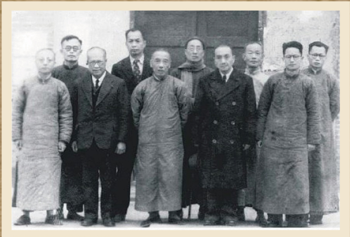 罗忠忱(左三)与伍镜湖(左二)等在璧山丁家坳合影